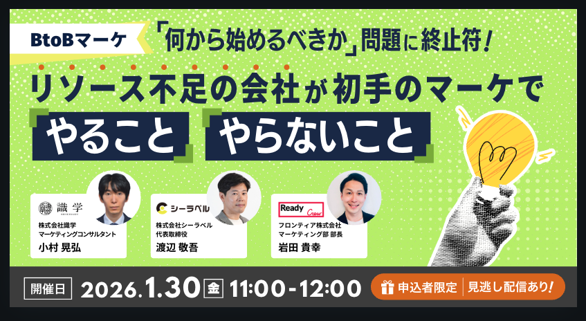 本ウェビナーでは、組織・戦略・実務を専門とする3社が、リソース不足に直面するBtoB企業に向けて、今取り組むべきことの「選択と集中」を徹底解説。